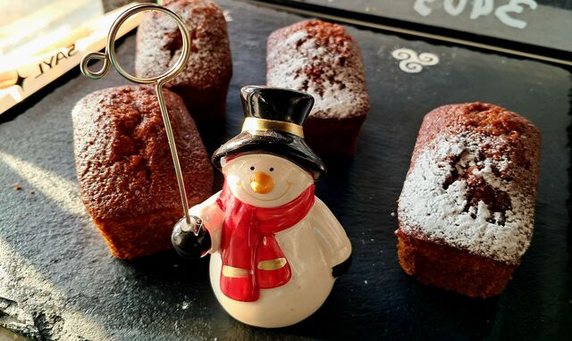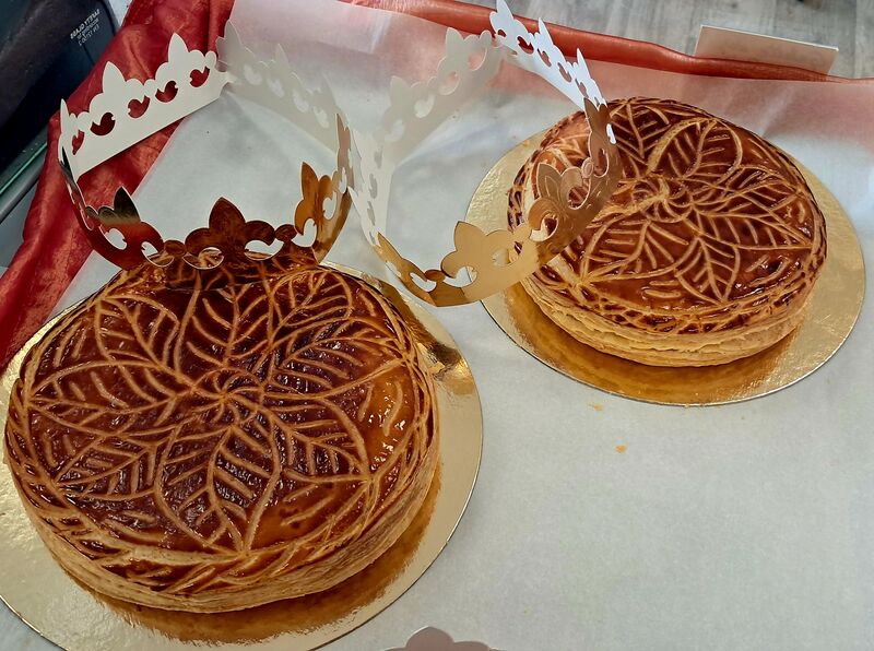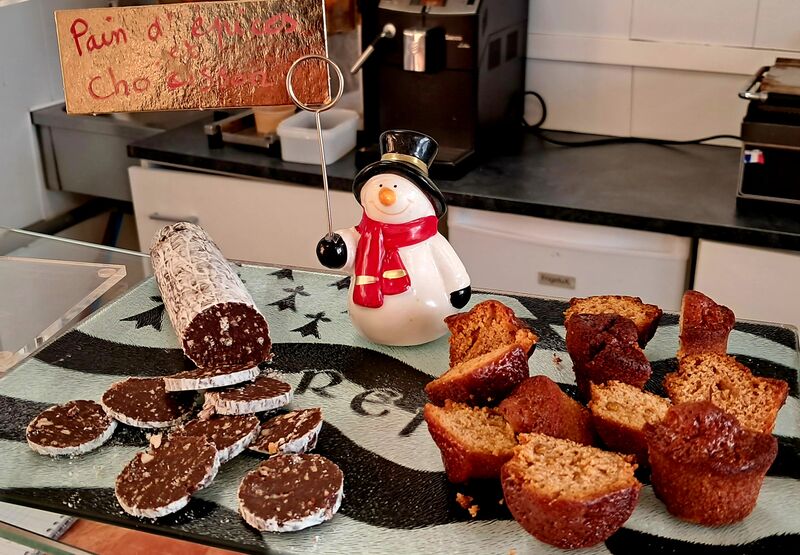 BÛCHE CHOCOLAT NOIR/PISTACHE : glace chocolat noir avec un cœur de glace pistache posée sur une streusel noisette.